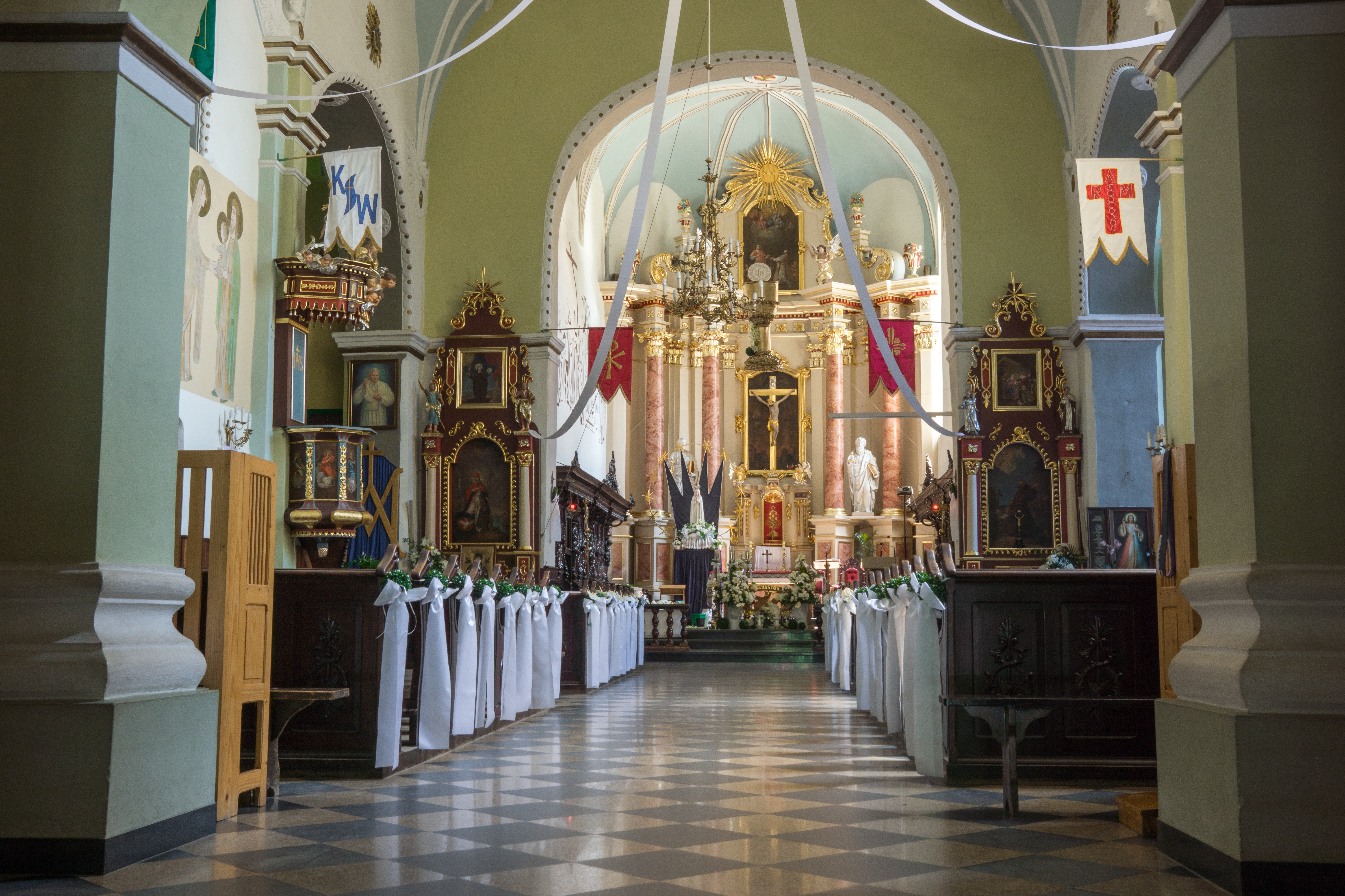 To jedna z najcenniejszych i najstarszych budowli sakralnych powstałych na Podkarpaciu i najcenniejszy zabytek Dynowa. Pierwotnie był drewniany, obecnie murowany w stylu późnorenesansowym, wzniesiony został, w miejscu spalonego, początkiem XVII w. Zbudowano go dzięki staraniom dziedziców miasta: Katarzyny Wapowskiej i jej syna Stanisława, kasztelana przemyskiego. Świątynia ulegała wielokrotnym przebudowom, ostatecznie jest jednonawową świątynią z dwiema bocznymi kaplicami. Kościół posiada cenne zabytkowe wyposażenie: barokowy ołtarz główny wraz z krucyfiksem i obrazem św. Wawrzyńca (w zwieńczeniu) oraz w tym stylu ołtarze w kaplicach transeptu, obraz Matki Bożej Dynowskiej z Dzieciątkiem i chrzcielnica z XVII w., rokokowy prospekt organowy, barokowa ambona, ołtarz z obrazem św. Antoniego oraz ponadnaturalnej wielkości rzeźba Chrystusa Ukrzyżowanego w kaplicy św. Antoniego, epitafium inskrypcyjne Stanisława Wapowskiego (marmurowe) umieszczone nad wejściem do zakrystii, a także neorenesansowe stalle w prezbiterium. W skład zespołu kościelnego wchodzi także późnobarokowa dzwonnica z końca XVII w. z kaplicą św. Teresy w przyziemiu. Wokół kościoła wzniesione jest murowane ogrodzenie z późnorenesansową bramą w formie trójosiowego łuku triumfalnego z bogatą ornamentyką. Posiada trzy przejścia zamknięte półkoliście. Na bramie, po bokach wejścia środkowego można podziwiać ustawione na postumentach posagi aniołów pochodzące z okresu przebudowy bramy, tj. z końca XIX w. Na dziedzińcu kościoła usytuowany jest pomnik papieża Jana Pawła II.