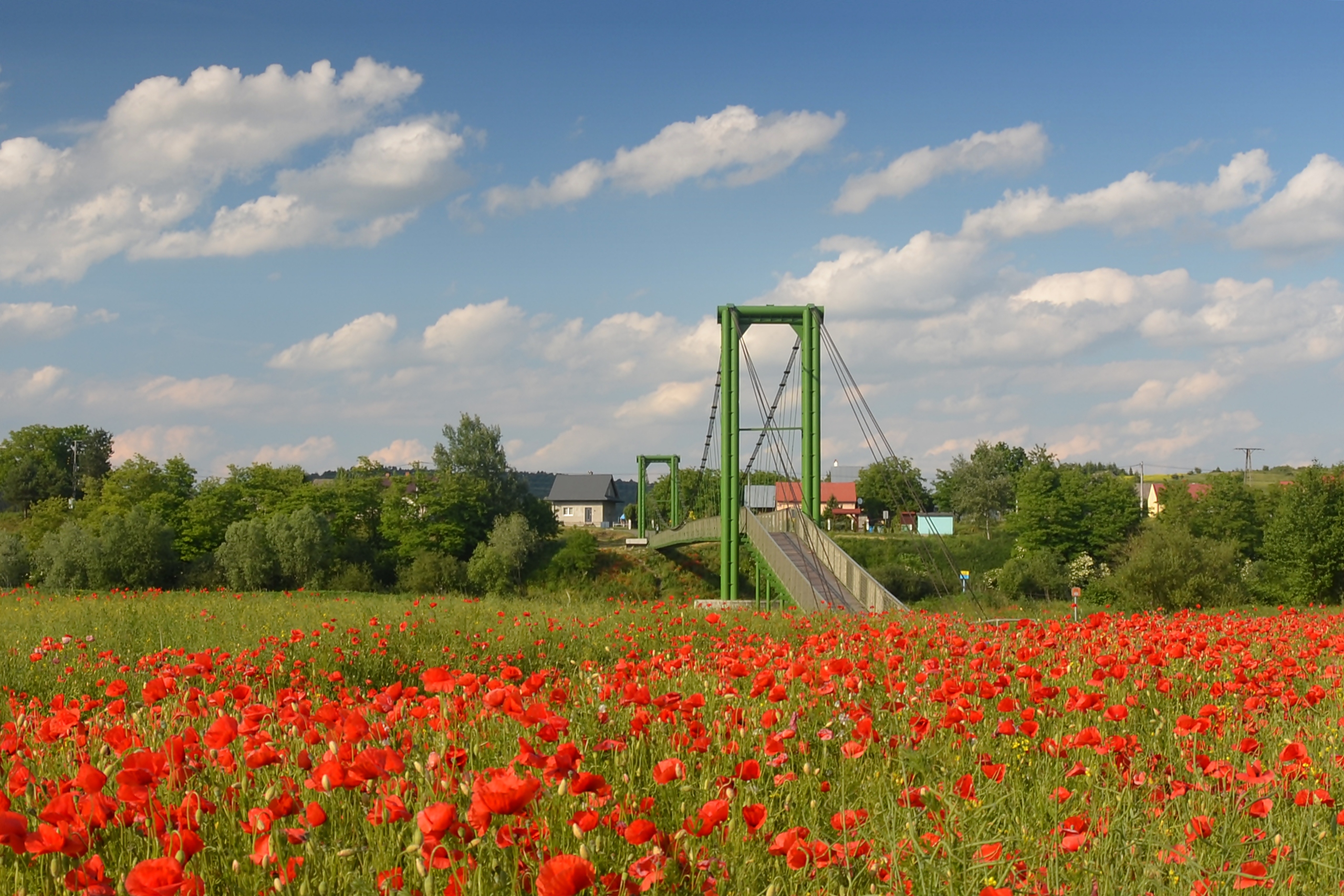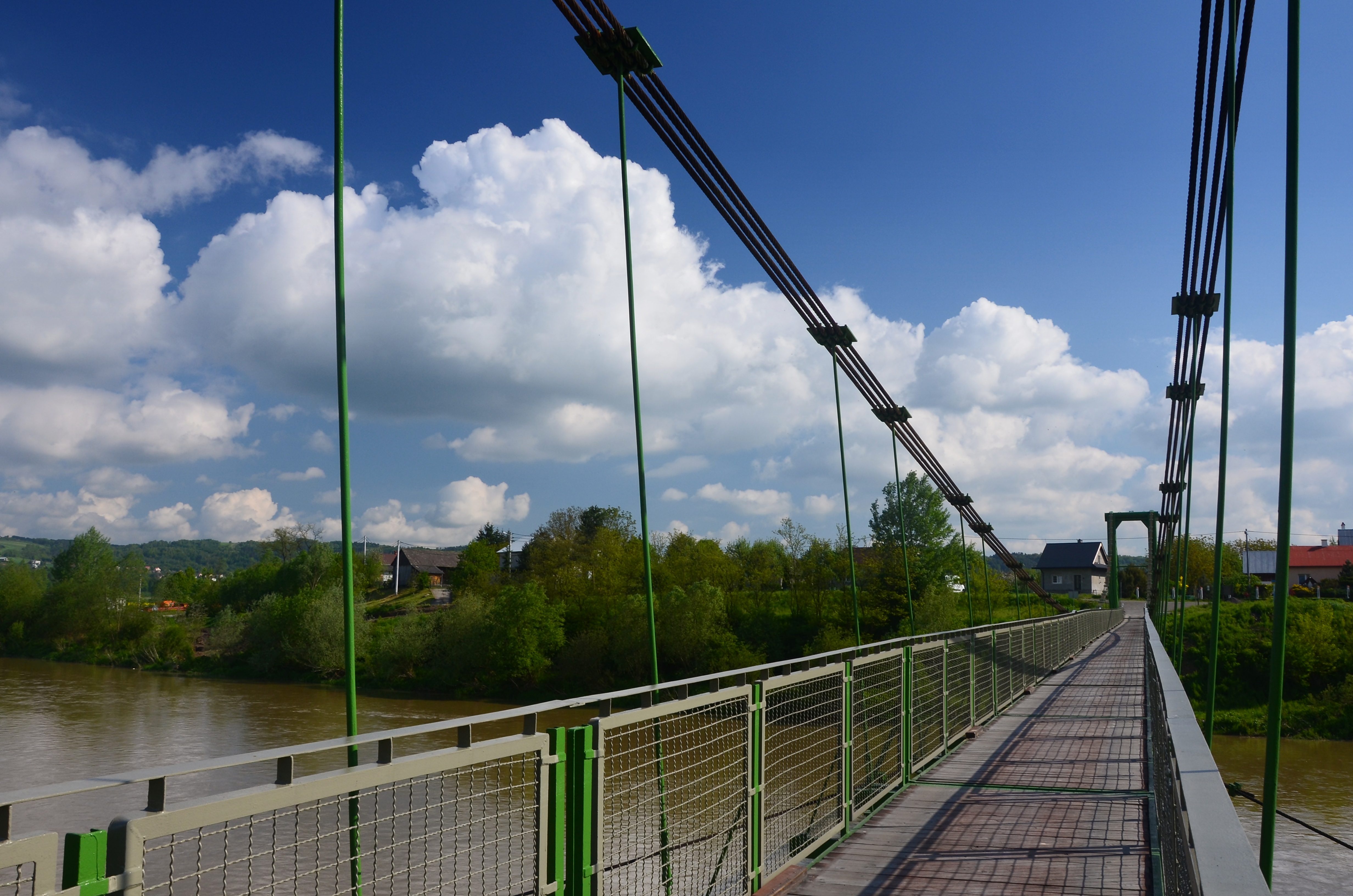 Kładka piesza nad rzeką San w Bachowie łączy dwie miejscowiści - Krążki Bachowskie i Bachów.