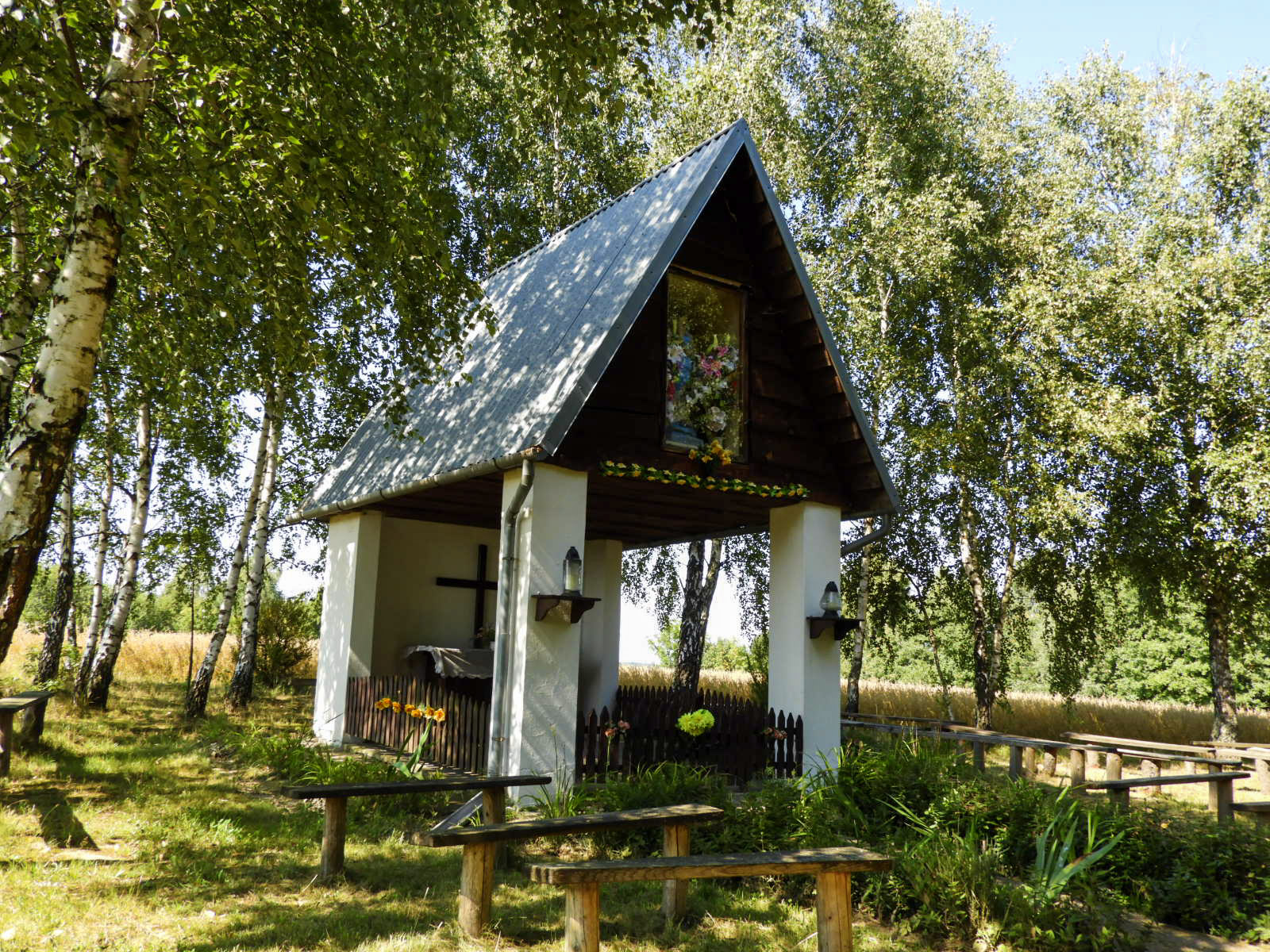 Zabytkowa kapliczka z XIX w. Matki Boskiej od Gradobicia zlokalizowana na terenie leśnym zwanym „na kościołach”.