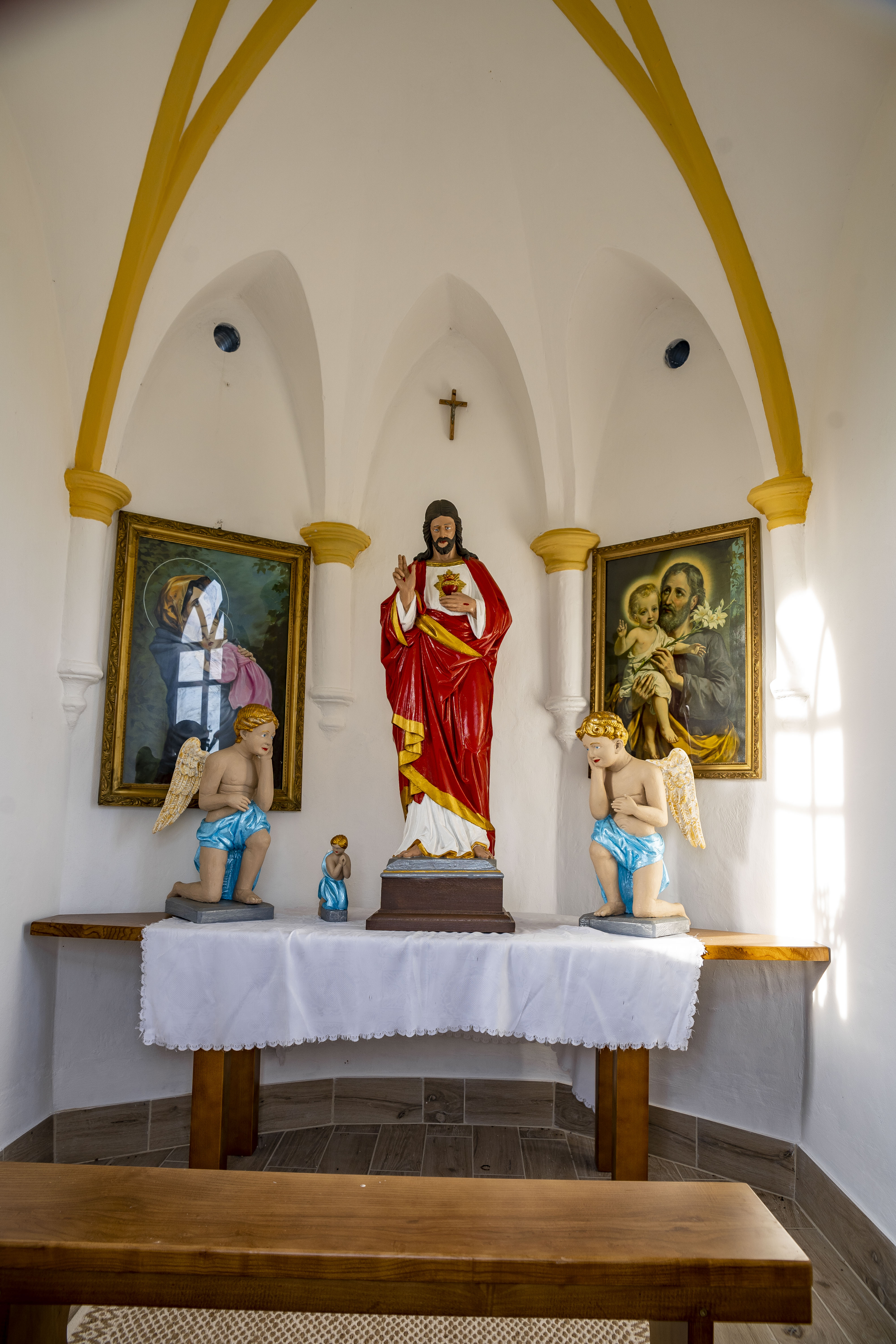 Murowana kaplica ku czci Najświętszej Marii Panny na wzgórzu za kościołem.