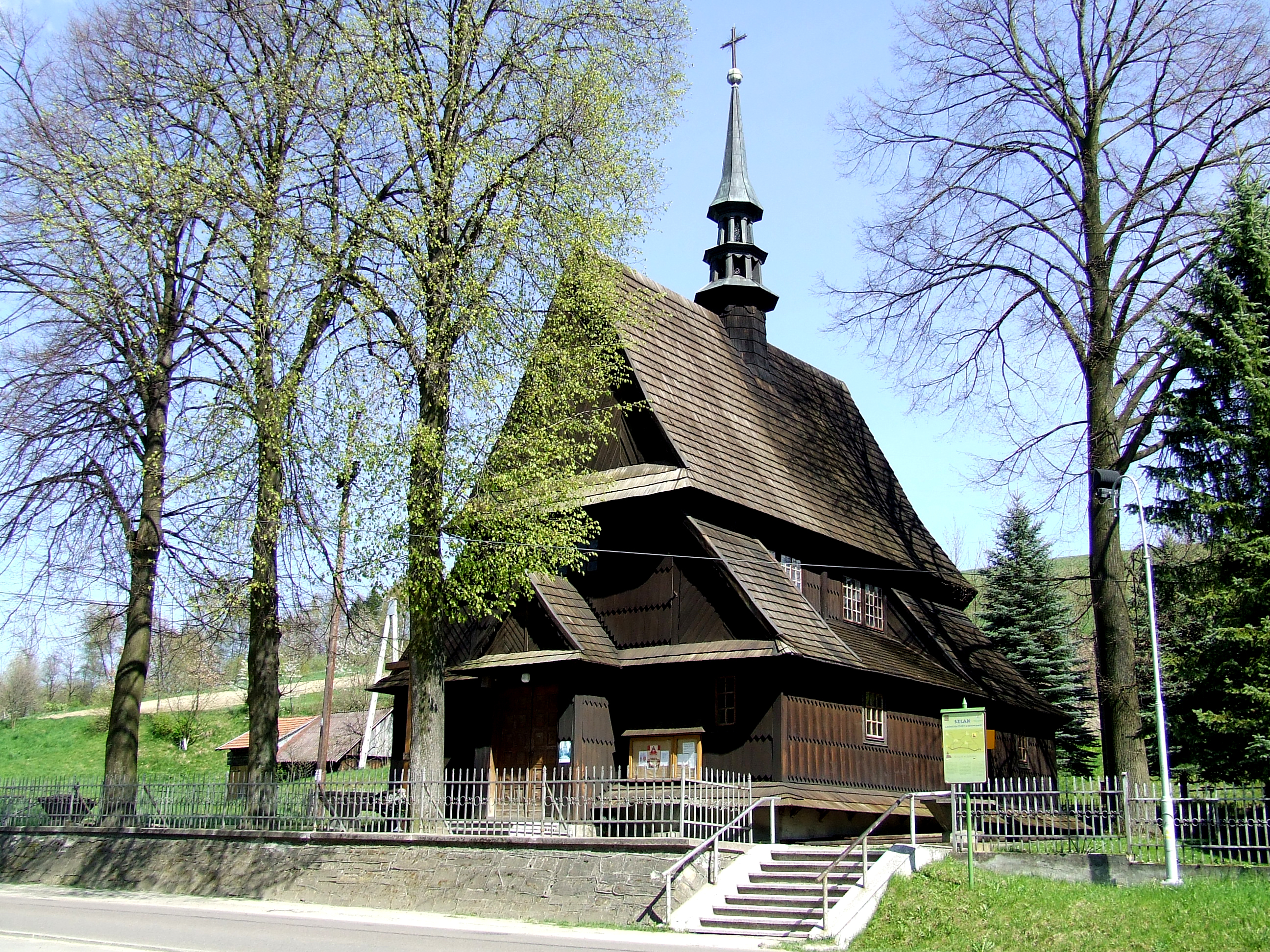 Drewniany kościół pw. Matki Bożej Częstochowskiej wzniesiony w latach 1936–1939 według projektu ówczesnego Wojewódzkiego Konserwatora Zabytków we Lwowie Bogdana Tretera; w tzw. stylu podhalańskim określanym też w okresie międzywojennym jako styl narodowy. Konsekracja świątyni nastąpiła w 1940 r. Wnętrze wykończone jest drewnianą boazerią z elementami sztuki snycerskiej. W ołtarzu głównym obraz Matki Bożej Częstochowskiej (1937 r.), po bokach natomiast rzeźby śś. Krzysztofa i Józefa. Wspomniany ołtarz główny wraz z dekoracją ścian zaprojektował Tadeusz Żurowski. Dwa boczne ołtarze Pana Jezusa i św. Stanisława Kostki z drewnianymi rzeźbami. Pod stropem belka tęczowa z grupą Pasji. Na uwagę zasługuje pięknie utrzymana drewniana posadzka.