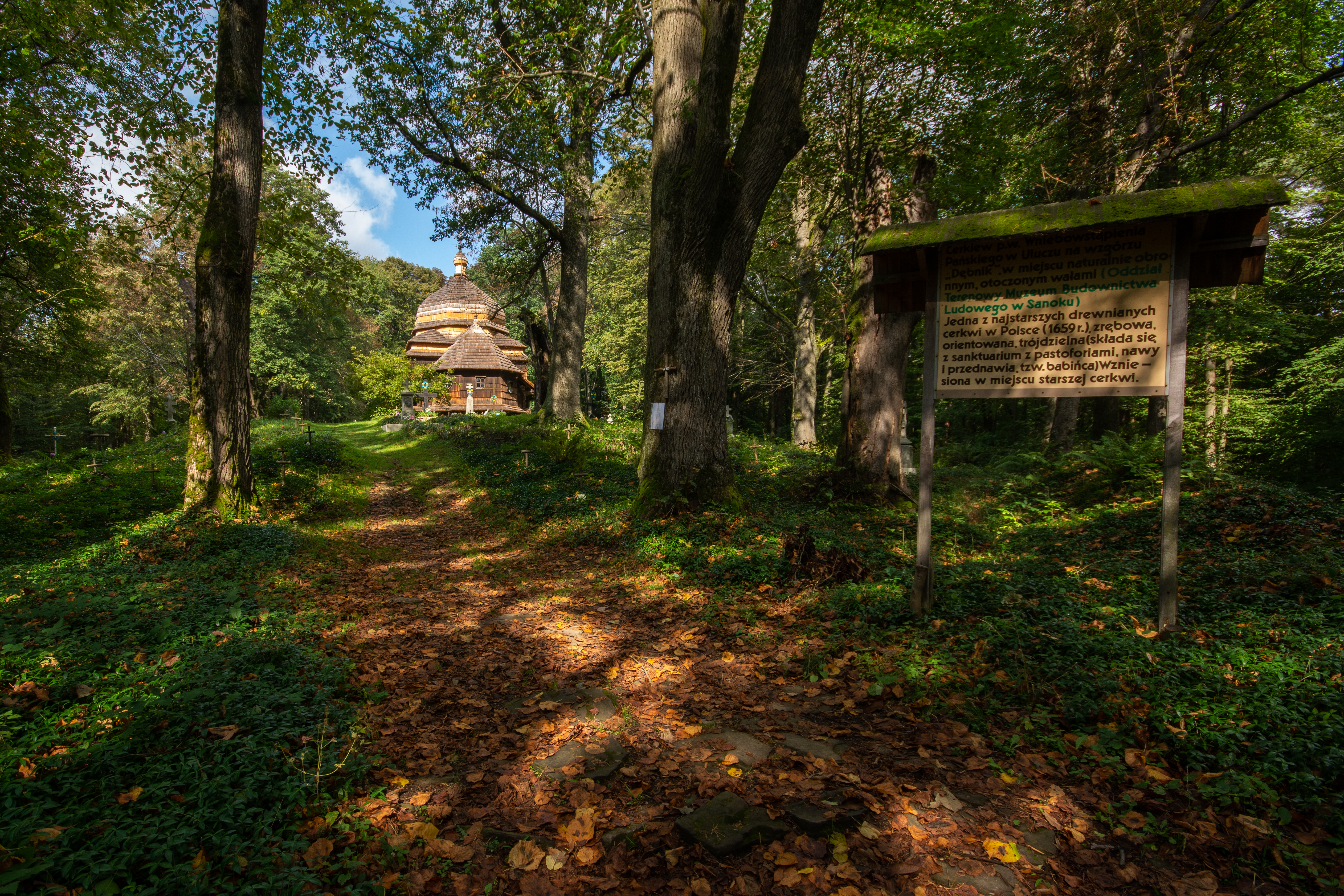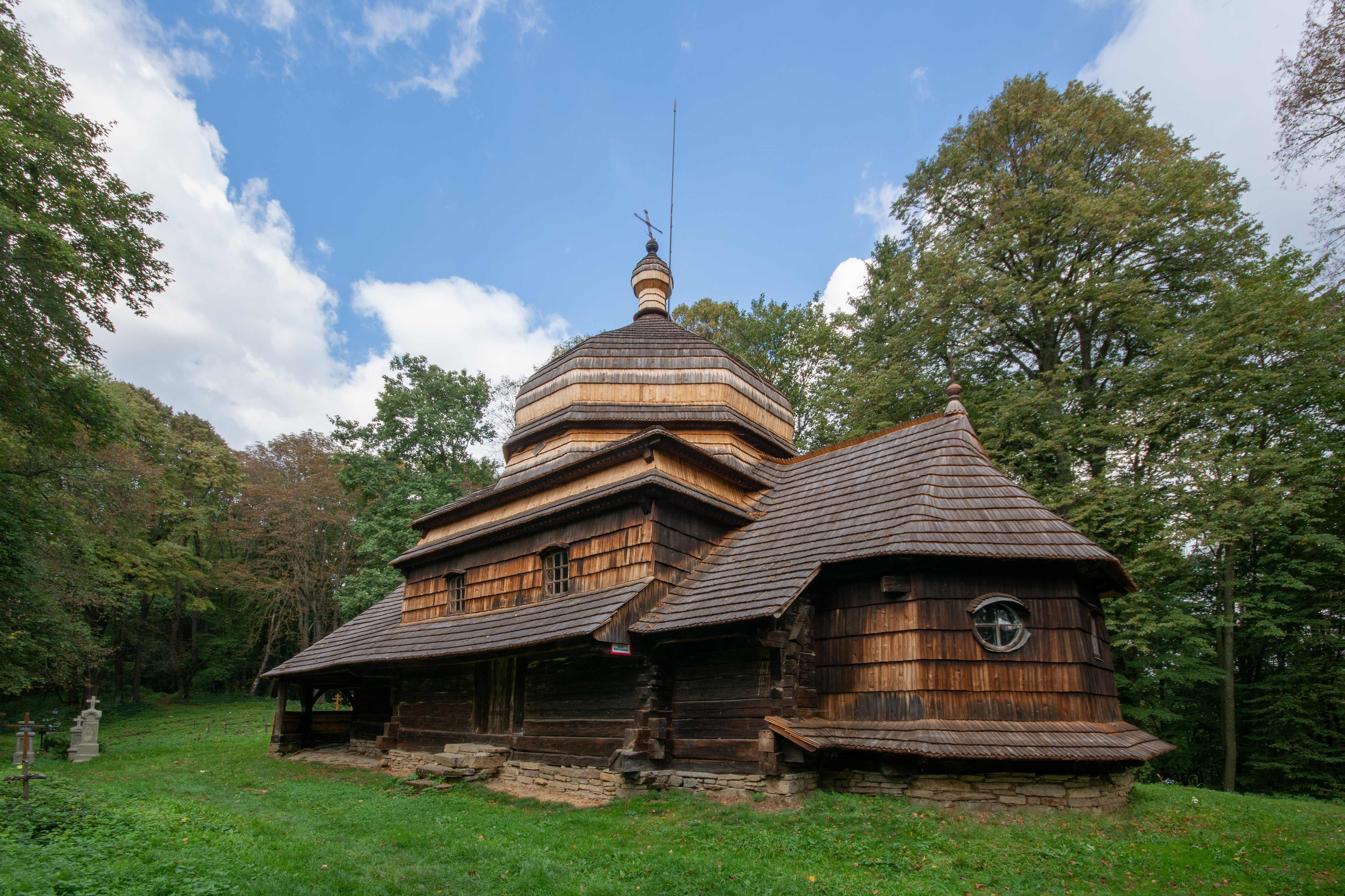 Drewniana cerkiew greckokatolicka pw. Wniebowstąpienia Pańskiego. Wzniesiona została prawdopodobnie w latach 1510–17 (według legendy), jednak badania dendrochronologiczne przeniosły datę budowy na 1659. Użytkowana do 1947 r. Obecnie mieści się tutaj filia Muzeum Budownictwa Ludowego w Sanoku. Świątynia otoczona jest starodrzewem. We wnętrzu zachowała się XVII-wieczna figuralna polichromia datowana na lata 1682-1683, a przedstawiająca sceny z życia i męki Chrystusa. Na pendentywach widnieją postacie Ewangelistów: na zachodnim – św. Łukasza, na wschodnim – św. Mateusza. Niekompletny wielostrefowy ikonostas z cerkwi znajduje się w Muzeum Budownictwa Ludowego w Sanoku. Świątynię można zwiedzać po wcześniejszym uzgodnieniu. Wokół cerkwi na wzgórzu cmentarz greckokatolicki, a na nim nagrobki z 1 poł. XX w., usypano tu mogiłę ku czci strzelców siczowych, stoi kapliczka upamiętniająca zniesienie pańszczyzny w 1848 r. oraz krzyż i tablica pamiątkowa z 1990 r., poświęcona księdzu Michałowi Werbyckiemu – kompozytorowi hymnu narodowego Ukrainy.