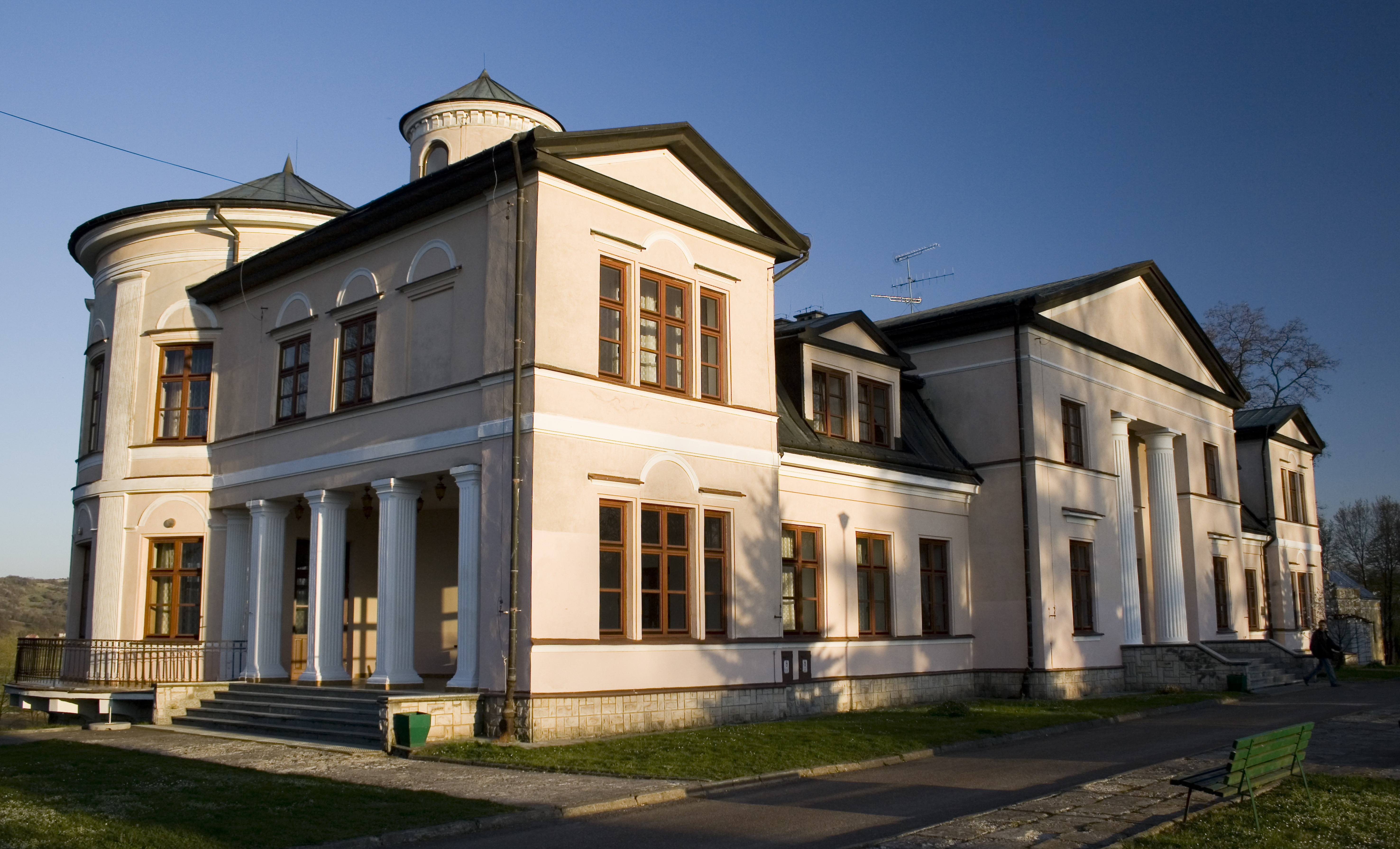 Późnoklasycystyczny pałac zbudowany w 1843 r. z inicjatywy Ludwika Skrzyńskiego. Najprawdopodobniej powstał według projektu Seweryna Fredry (niektóre źródła mówią, że autorem był Aleksander Fredro). Początki historii tego zabytku sięgają XVI w. Pierwotnie był to drewniany dwór obronny. Później była to murowana fortyfikacja z basztami. Obiekt powstał na miejscu starego zamku, którego ruiny stały jeszcze na pocz. XIX w. Ma rzadko spotykaną w polskiej architekturze asymetryczną bryłę z charakterystyczną rotundą. W skład zespołu pałacowo-parkowego oprócz pałacu wchodzą: parterowa dwutraktowa XIX-wieczna oficyna, ogród o regularnym układzie ścieżek, neorokokowa kaplica z 1889 r. staraniem ówczesnego właściciela Nozdrzca Adama Skrzyńskiego (postawiona na miejscu starszego murowanego budynku, konsekrowana w 1893 r. pw. NMP Królowej Anielskiej pełniła funkcję kaplicy pałacowej i mauzoleum Skrzyńskich (krypta), a do czasów II wojny światowej posiadała także status kaplicy publicznej). We wnętrzu, w polu głównym ołtarza jest obraz Matki Bożej z Dzieciątkiem na ręku i dwoma aniołkami (1891 r., J. Makarewicz ze Lwowa – autor obrazu).