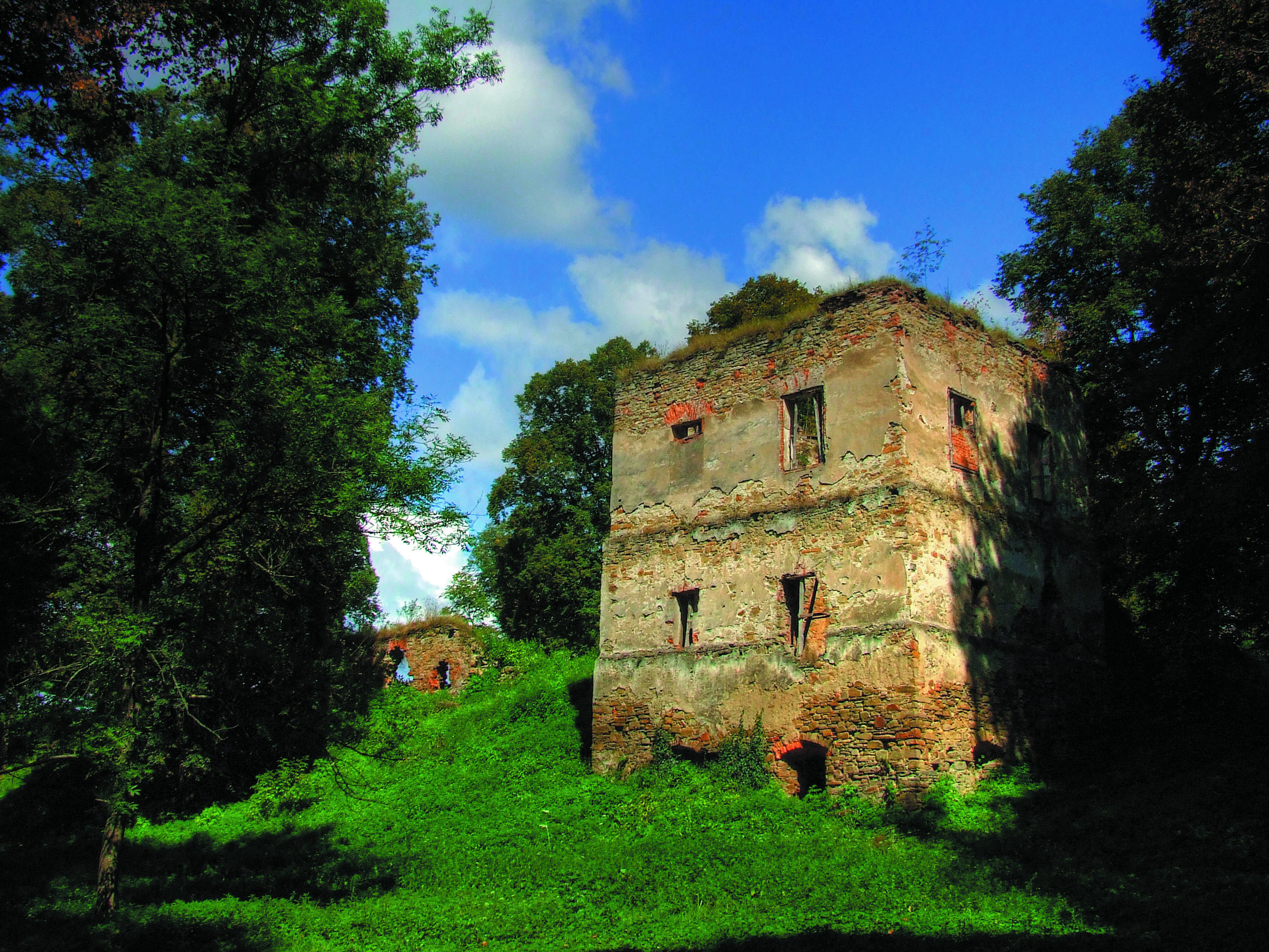 Pozostałości założenia zamkowego (dawnej fortalicji Stadnickich i ich spadkobierców, która na przełomie XVIII i XIX w. przekształcona została w rezydencję Starzeńskich). Do czasów obecnych przetrwały ruiny zamku, z którego zachowały się ruiny dwóch baszt (od strony północno-zachodniej i połudnowo-zachodniej), niewielki odcinek muru kurtynowego (od strony zachodniej). W baszcie południowo-zachodniej zachowały się ślady polichromii. W północno-wschodniej części założenia zachowały się fundamenty pierwotnego renesansowego dworu Stadnickich wraz z kamiennymi piwnicami o kolebkowym sklepieniu oraz park krajobrazowy o rodowodzie sięgającym XVII w. z licznym starodrzewem i alejami grabowymi.